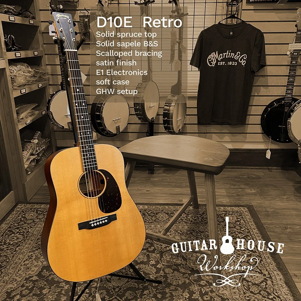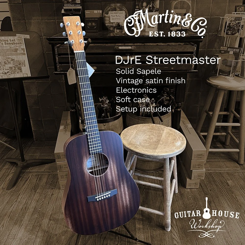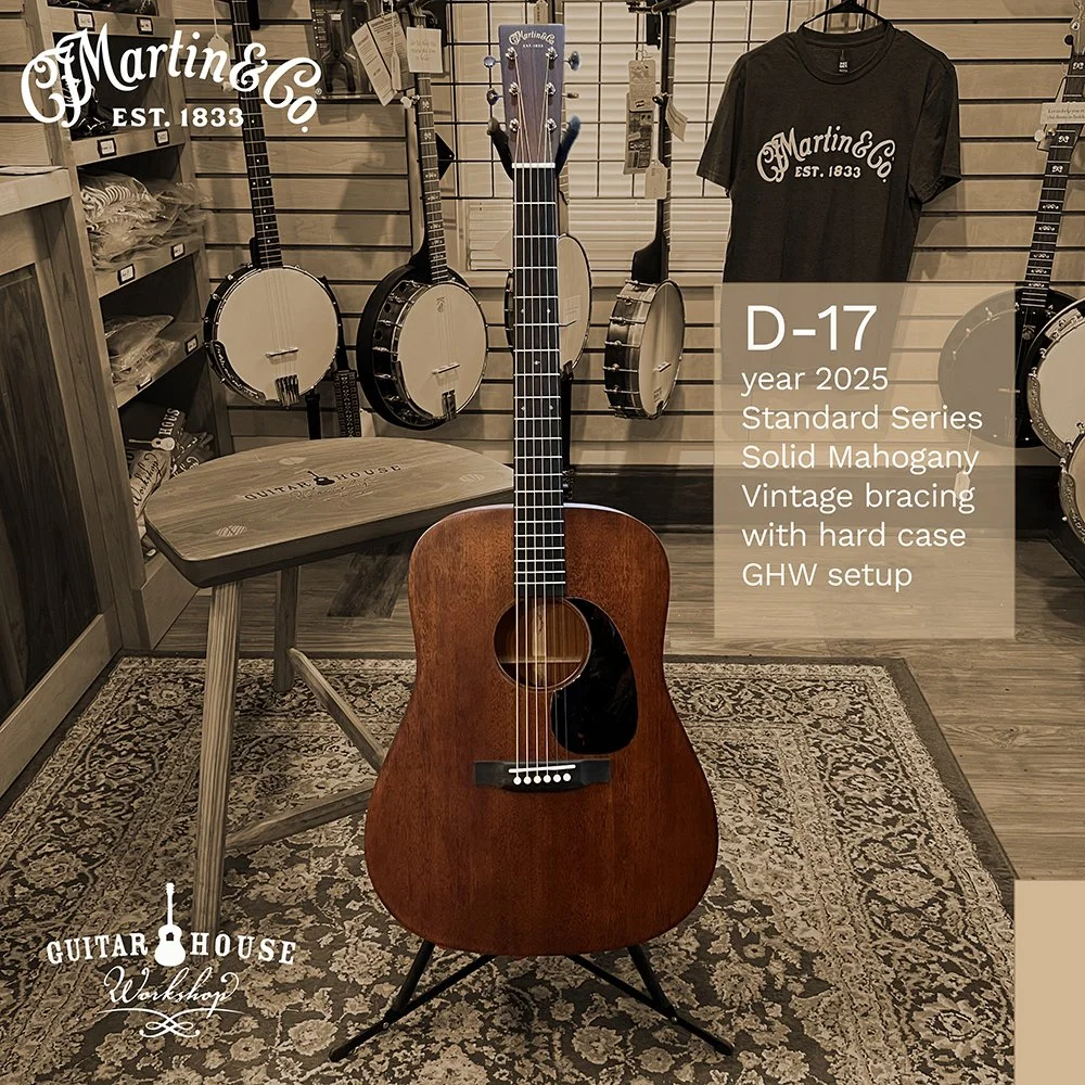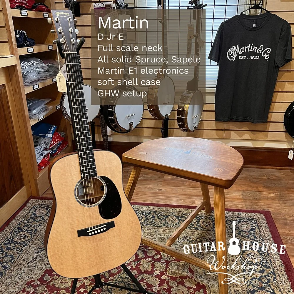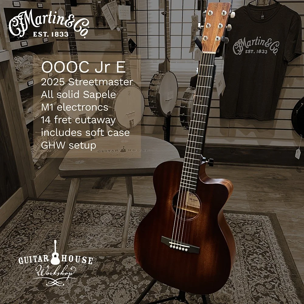 A Martin Authorized Repair Center for several years, Guitar House Workshop became a proud dealer of new Martin Guitars in 2023. Come on in and see why Martin’s reputation for craftsmanship is unparalleled. If you have your heart set on a Martin Acoustic guitar, our staff will help you find the model that is right for you. While we are working to represent the Martin line as fully as possible, specific models arrive at the shop and go home to new owners regularly. Images below represent guitars we frequently carry. Martin’s lifetime warranty for first owners is famously comprehensive. And all of our new guitars include a professional GHW setup.
